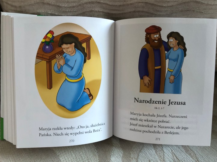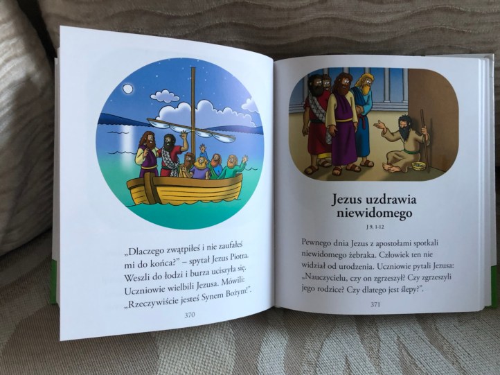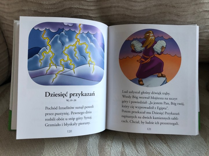 Jest to bardzo wartościowa lektura, która ma na celu wprowadzić dzieci w świat Pisma Świętego. Kierowana jest do najmłodszych czytelników, a duża ilość elementów na obrazkach na pewno zainteresuje każdego malucha. Tekstu też nie jest zbyt dużo, dzięki czemu dziecko nie będzie miało czasu na nudę.
