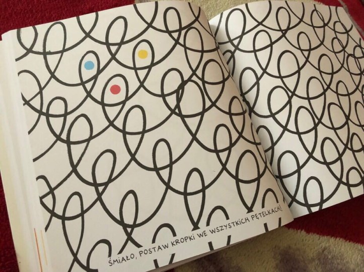 Dalej znajdziemy dość aktywne ćwiczenia, gdzie maluch będzie musiał się wykazać twórczością artystyczną. Myślę, że po kilku zadaniach dziecko wyrobi sobie pozytywny nawyk trzymania kredki czy pisaka. Być może w ten sposób czytanka częściowo przyczyni się do nauki samodzielnego pisania u naszej pociechy.