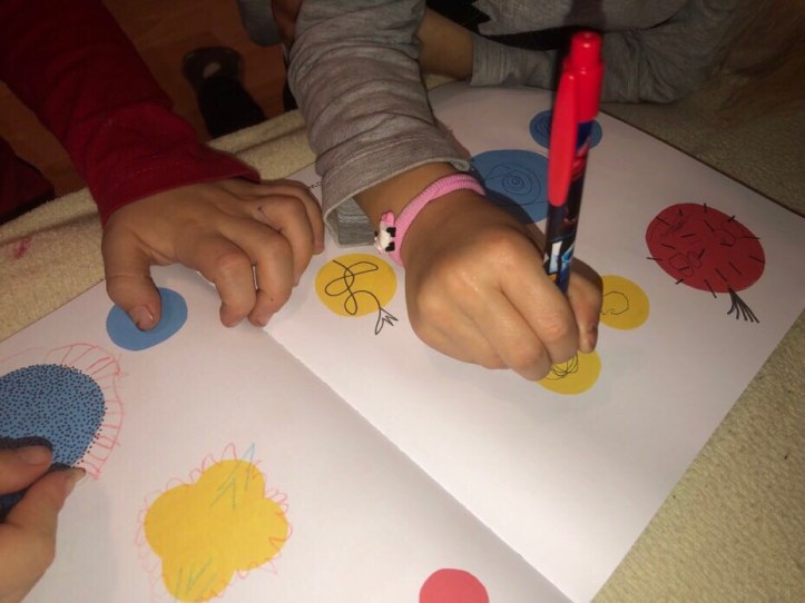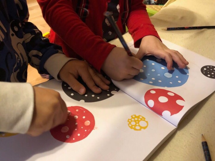 Zaczynamy od prostych zadań, gdzie rysujemy kropki w kropkach, między kropkami czy wokoło kropek. Kółka ozdabiamy, łączymy, a nawet bazgrzemy. Naprawiamy uszkodzone, łączymy je w grupy w zależności od wielkości albo koloru.