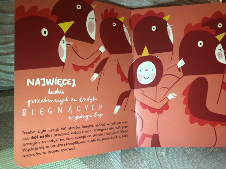 Wesoła książeczka, z twardymi stronami, w sam raz dla małych rączek. Zainteresuje nie tylko najmłodszych czytelników ale nawet dorosłych, którzy chętnie dowiedzą się o wyczynach ludzi robiących dziwne rzeczy.