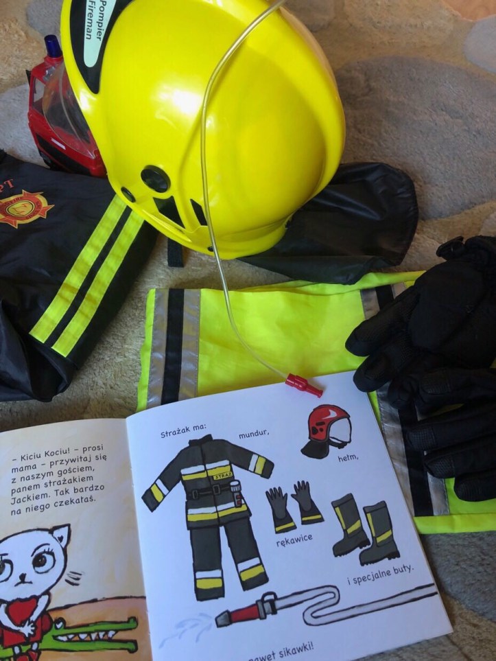 Dynamikę fabuły z obrazami podkreślają niezwykłe doświadczenia bohaterki. Dziecko dowiaduje się, że strażak zajmuje się nie tylko gaszeniem pożarów ale też ratuje ludzi podczas powodzi, uwalnia ich z rozbitych samochodów, usuwa gniazda os itp. Książeczka ta jest bardzo pouczająca dla małych dzieci.