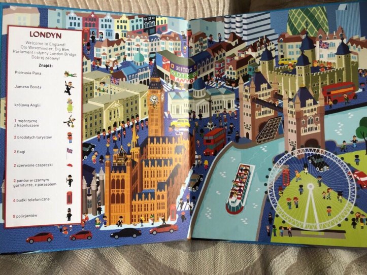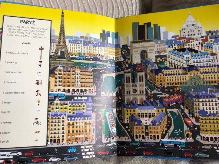 „Szukaj i znajduj. Wielkie miasta” to książka wypełniona detalami z dziewięciu miast, takich jak: Rio de Janeiro, Londyn, Paryż, NY, Stambuł, Sydney, New Delhi, Ateny i Tokio.