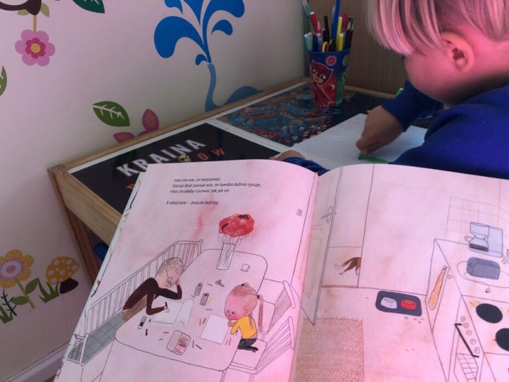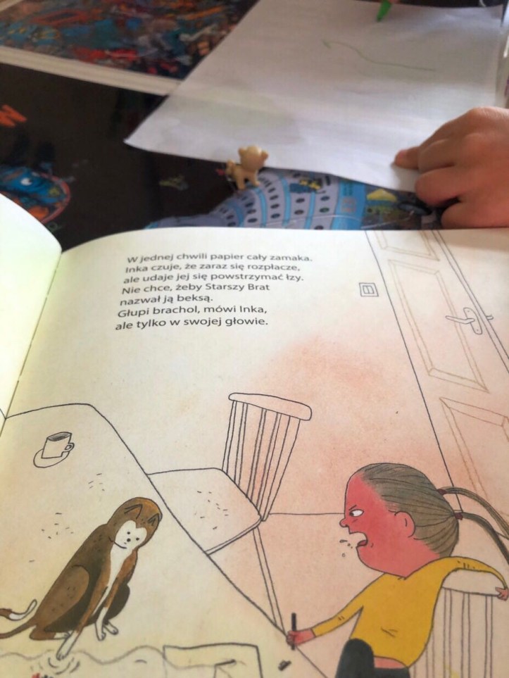 „Okropny rysunek” to opowiadanie o trudnych dziecięcych emocjach i relacjach między rodzeństwem. Książka o złości, podziwie, chęci naśladowania starszego rodzeństwa i o tym, że nie zawsze wszystko może się udać.