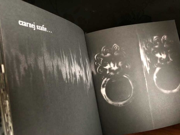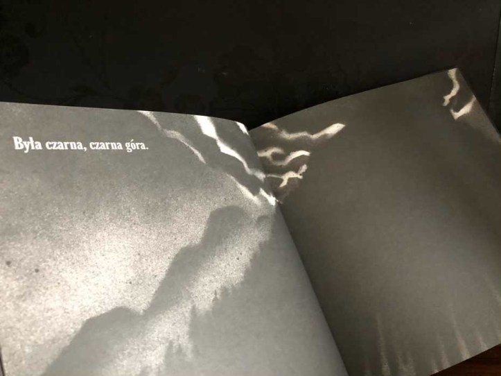 Książeczka sprawi, że najpierw znajdziemy się na czarnej górze, potem w czarnym lesie, czarnej chacie, czarnym korytarzu, czarnym pokoju, czarnym strychu, czarnej szafie…