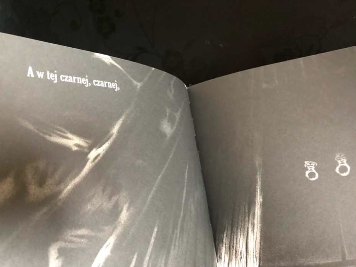 Powtarzanie słów „czarny, czarny” w połączeniu z „klimatycznymi” ilustracjami tworzy atmosferę grozy i poczucie jakby za chwilę miało wydarzyć się coś strasznego.