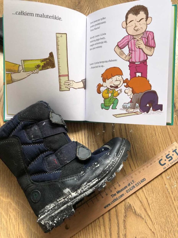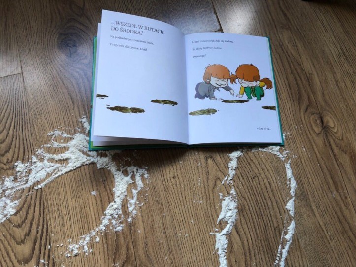 Nagle okazuje się, że ktoś jednak popełnił tu „prawdziwą zbrodnię” – ubłocił butami świeżo umytą podłogę. Leon i Livia – główni detektywi przedszkola, próbują rozwiązać zagadkę tego bałaganu. Historia trzyma w napięciu do ostaniej kartki…