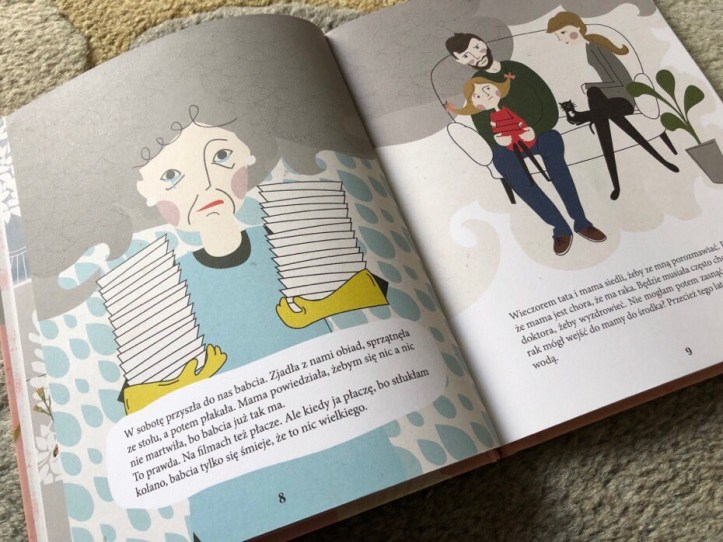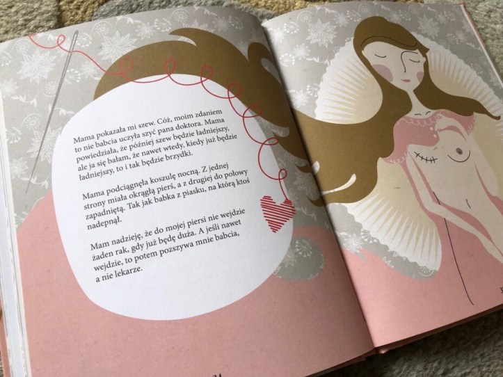 „Mama miała operację” to historia dziewczynki, która obserwuje walkę z rakiem ukochanej osoby. Pokazuje też w jaki sposób przejść przez terapię antyrakową z podniesionym czołem i bez załamywania rąk.