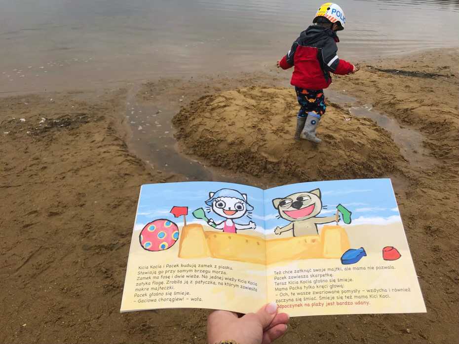 Mamy w domu wiele części z serii „Kicia Kocia”. Bardzo je lubimy i często czytamy. Książeczki poruszają na ogół jakiś konkretny temat lub problem, który często dotyka dzieci i rodziców. Dziś czytaliśmy po prostu o jednym dniu z życia małej bohaterki, bardzo podobnym do tych, które my sami spędzamy w naszym ulubionym miejscu. W końcu co może zapewnić więcej zabawy niż woda i piasek?