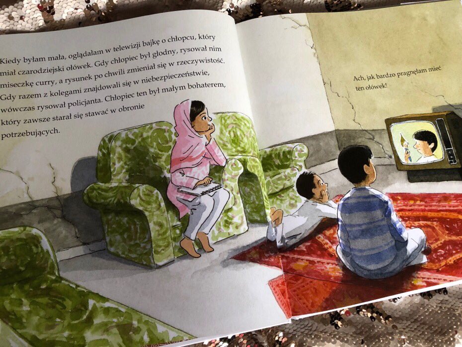 Mała Malala mieszkała z rodziną w dolinie rzeki Swat, w Pakistanie. Jej rodzinny dom mieścił się niedaleko wysypiska śmieci. Dziewczynka codziennie rano, budząc się o świcie, otwierała szafkę stojącą obok jej łóżka, z nadzieją, że znajdzie w niej magiczny ołówek. Gdyby go miała, jej marzenia by się spełniły i wówczas mogłaby podarować innym ludziom wszystko to, co bym nim narysowała.