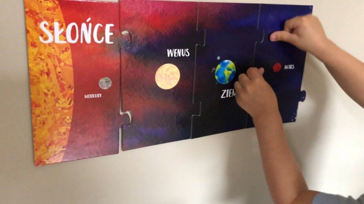 Ułożenie puzzli z książeczki stanowi atrakcyjne zajęcie, dzięki któremu dziecko zapragnie w przyszłości poszerzać swoją wiedzę o kosmosie. Przy takiej porcji wiedzy, w głowie zostaje naprawę sporo informacji, a po spotkaniu z takimi pomocami edukacyjnymi nie ma mowy, aby nie umieć wyliczyć planet w odpowiedniej kolejności.