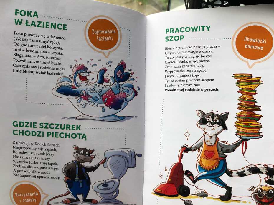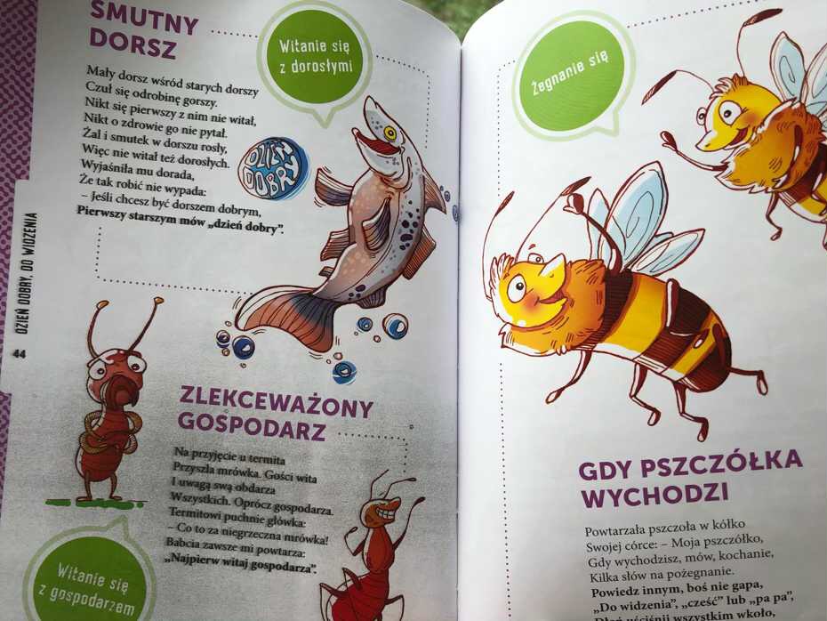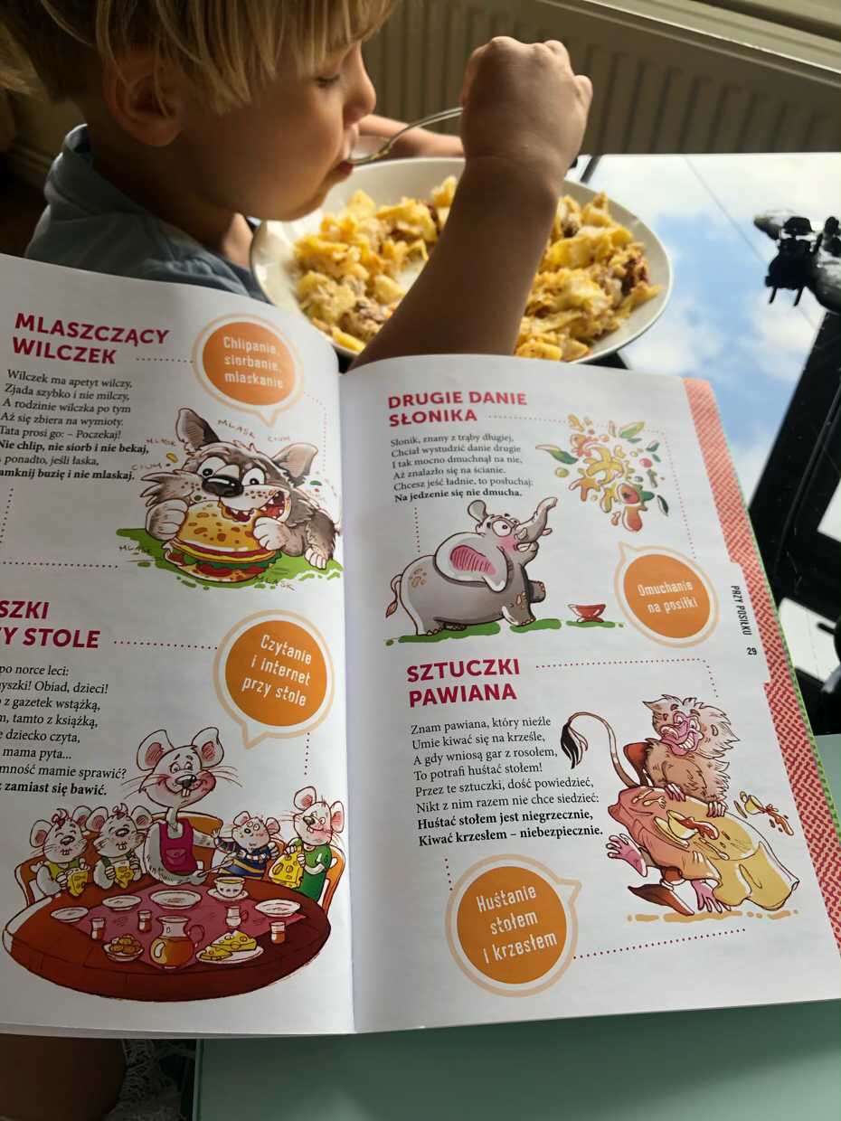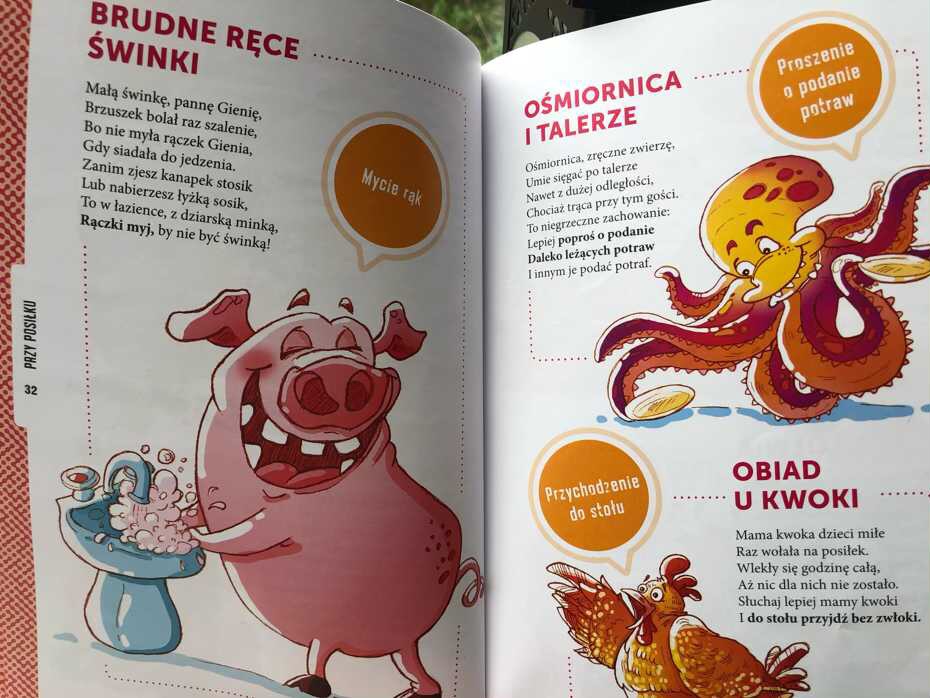 Jest to bardzo fajna książka do pokazania dzieciom jak należy się zachowywać w różnych sytuacjach. Na zasadzie krótkich i śmiesznych wierszyków na pewno dobrze trafi do maluchów oraz zapadnie im w pamięci.