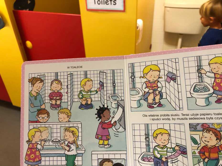 „Obrazki dla maluchów. W przedszkolu” pokazuje jak dzieci powinny się zachowywać między innymi w toalecie, przy obiedzie czy na placu zabaw. W książce znalazło się również miejsce na rady dla rodziców. Wskazówki i sugestie od bardziej praktycznej strony podpowiedzą rodzicom, że np. zamek w kurtce łatwiej jest zasunąć, niż zapinać guziki. Buty na rzepy będą wygodniejsze niż wiązanie sznurowadeł. Na zajęciach gimnastycznych dres ułatwi ćwiczenia bardziej, niż piękne odświętne ubranka. Maluch łatwiej poradzi sobie z rękawiczkami z jednym palcem niż z pięcioma.