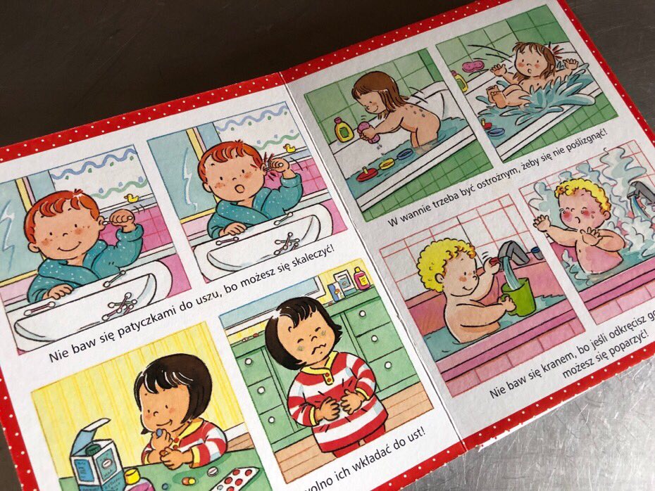Moim zdaniem, trzeba uczyć dziecko prawidłowych zachowań i nawyków od jak najmłodszych lat. W książeczce maluch znajdzie informacje na temat niebezpieczeństw czyhających na niego w najbliższym otoczeniu, takich jak: zagrożenia w kuchni, łazience, w czasie jedzenia, harce w domu, na placu zabaw i w sklepie.