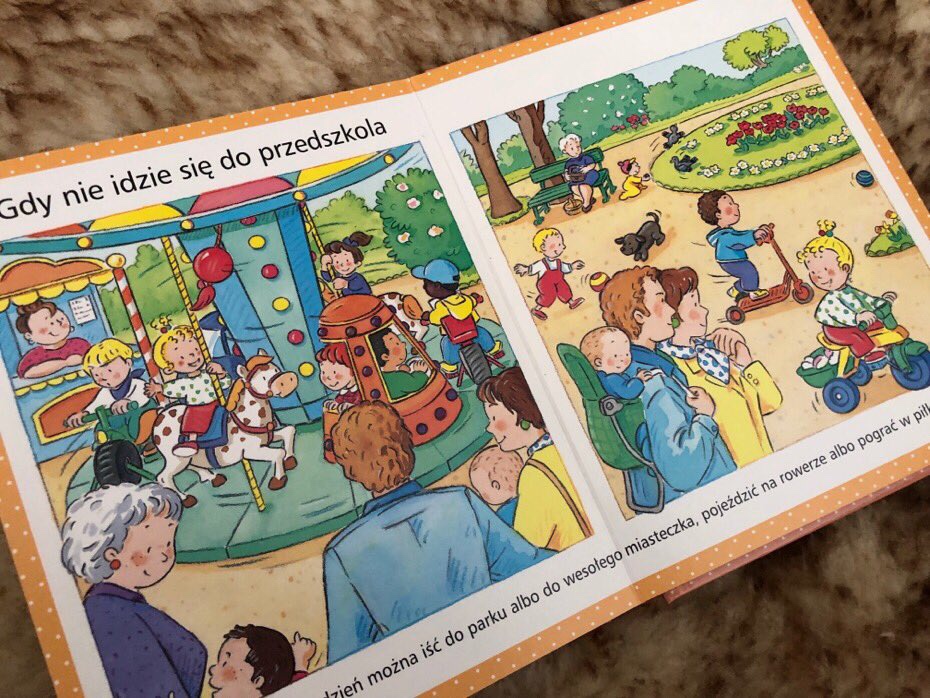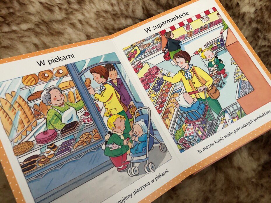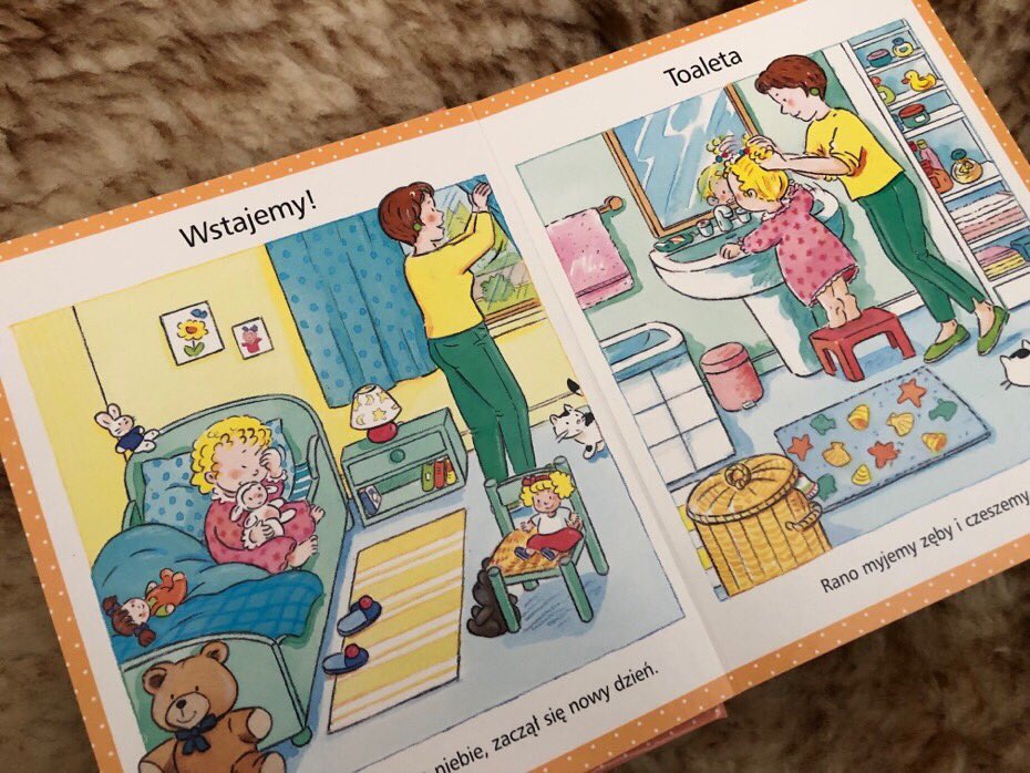 Natomiast w drodze do mieszkania nie obejdzie się bez zrobienia zakupów w supermarkecie czy pobliskiej piekarni. Relaks w domu umili dziecku bajka w telewizji i zabawa przed kąpielą. Po myciu, maluch zasiada do stołu, aby wspólnie z rodziną zjeść kolację i opowiedzieć sobie nawzajem, co wydarzyło się w ciągu dnia. Moment, w którym kończy się dzień malucha to ten, gdzie do snu czytana jest książka, tato daje miłego buziaka i dziecko zapada w głęboki sen.
