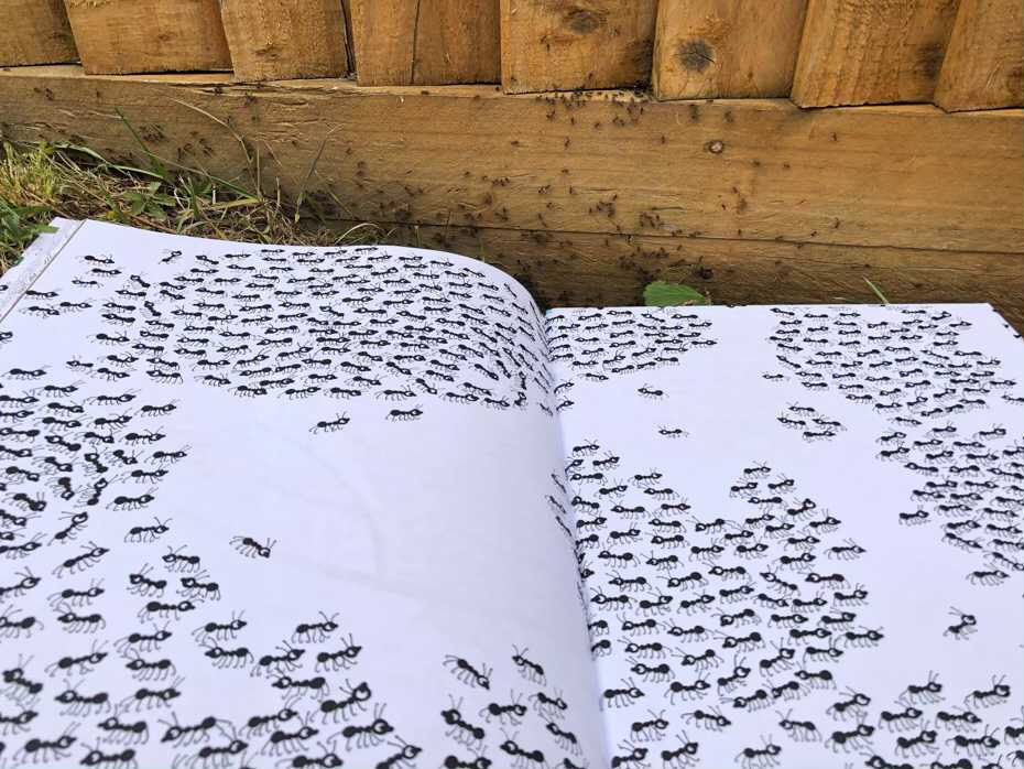 Na wstępie mali czytelnicy zobaczą przekrój mrowiska, które znajduje się w lesie i jest domem tysiąca mrówek. Dziecięca przygoda zaczyna się oczywiście od zobaczenia miejsca, w którym królowa składa jajeczka. Następnie ze starszymi przedstawicielkami robotnic wędrujemy po lesie w poszukiwaniu pożywienia. Poznamy też hierarchię w mrowisku, wraz z zadaniami poszczególnych osobników. Zobaczymy mrówki, które bronią swojego domu, czy inne, wychowujące kolejne pokolenia.