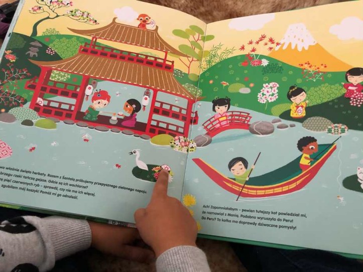 „Lila w podróży dookoła świata” jest książką obrazkową, barwną, kolorową i z wieloma szczegółami. Poza ciekawą historią przekazaną w tej lekturze, dzięki niej dzieci ćwiczą również spostrzegawczość.