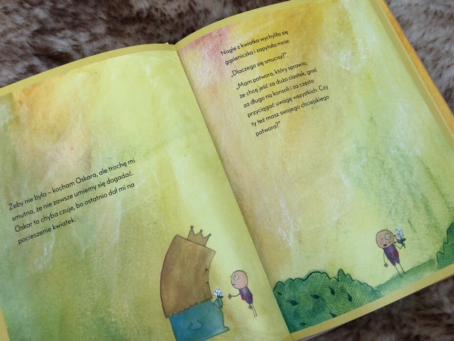 Książka „Chciejskie potwory” uczy nas jak znaleźć równowagę wśród naszych pragnień. Przedstawia historię o pewnym chłopcu, który znalazł sposób na to, by jego osobisty “chciejski” potwór Oskar, przestał nim dyrygować.