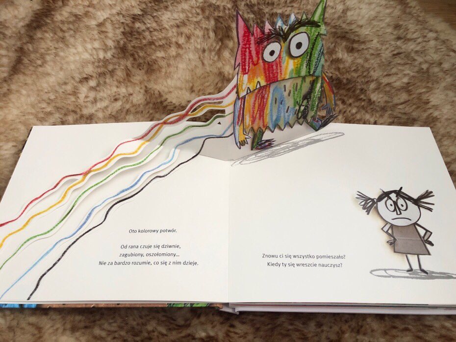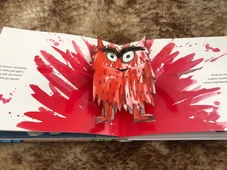 Książka POP-UP kryje w sobie wiele niespodzianek. Robi na dziecku naprawdę dobre wrażenie. Chociaż Kolorowy potwór ma za zadanie oswajanie i poznawanie różnych emocji, książka sama z siebie stanowi świetną zabawę dla dziecka.