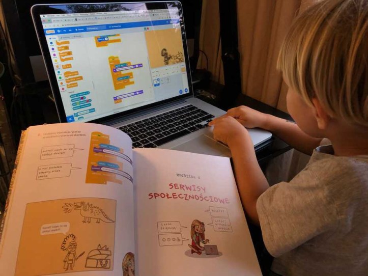 W książce znajdziecie opisy, jak programować używając platformy Scratch, a także link do wszystkich potrzebnych grafik. Dzieci będą mogły stworzyć kilka prostych gier, które pokażą im, że to wcale nie jest takie trudne. To nie tylko opowieść obrazkowa, ale również prosty zestaw zadań, które wprowadzają dzieci w świat programowania Scratch, czyli narzędzia przygotowanego specjalnie z myślą o dzieciach.