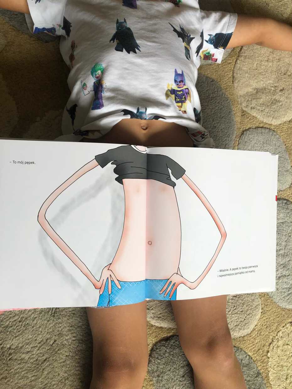Mądry tata przychodzi z pomocą. Pokazuje Kuku jego pępek i opowiadana o najpiękniejszej i najważniejszej pamiątce, jaką mamy zostawiają swoim dzieciom.
