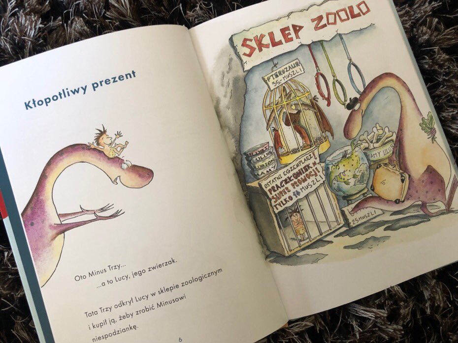 „Minus Trzy. Nieznośna Lucy” to dalszy ciąg zabawnych przygód dinozaura i praludzika z urzekającymi, pełnymi humoru ilustracjami.