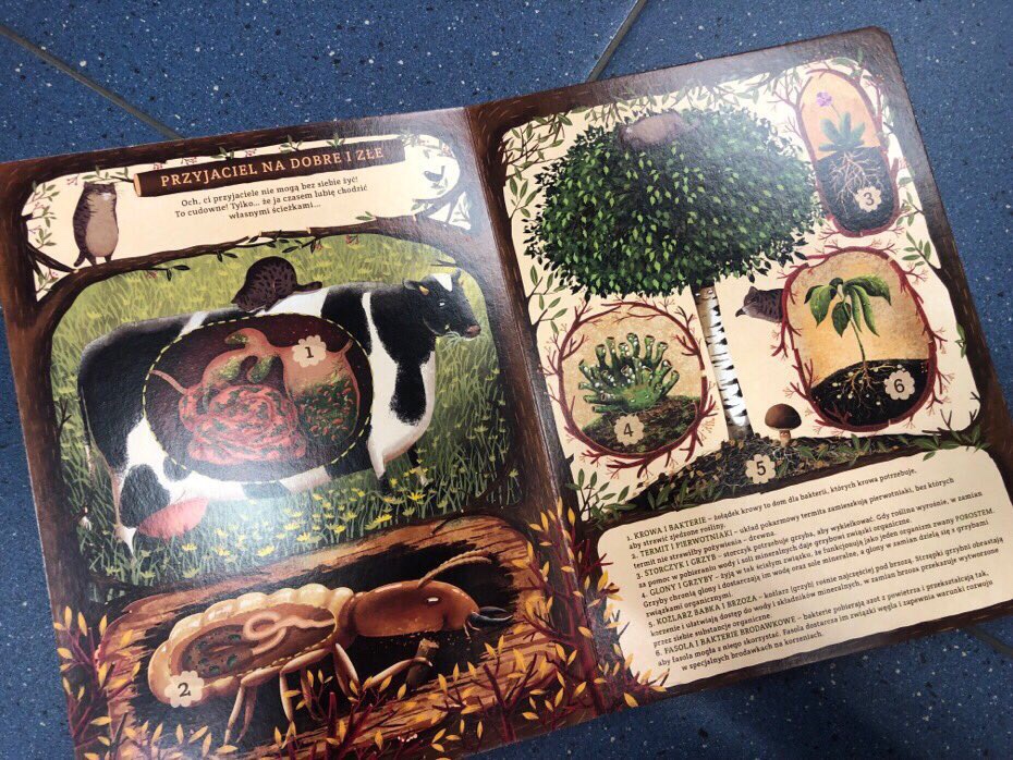 Publikacja zawiera mnóstwo ciekawostek z życia zwierząt, roślin i grzybów. Wzbogacona w ujmujący sposób ilustracjami Emilii Dziubak, którą podziwiałam w „Opowiem, Ci mamo co robią dinozaury”, „Draka ekonieboraka” czy „W pogoni za życiem”, dlatego tym bardziej z zaciekawieniem sięgnęłam po tę pozycję.