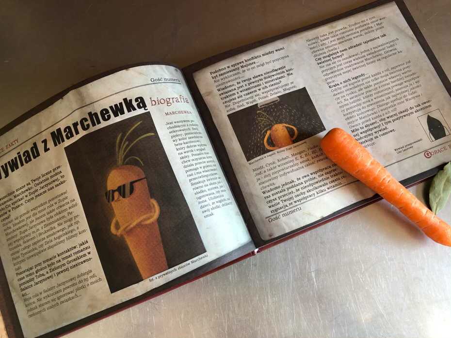 Już na pierwszych stronach traficie na wywiad z marchewką, przeprowadzony przez liścia laurowego.