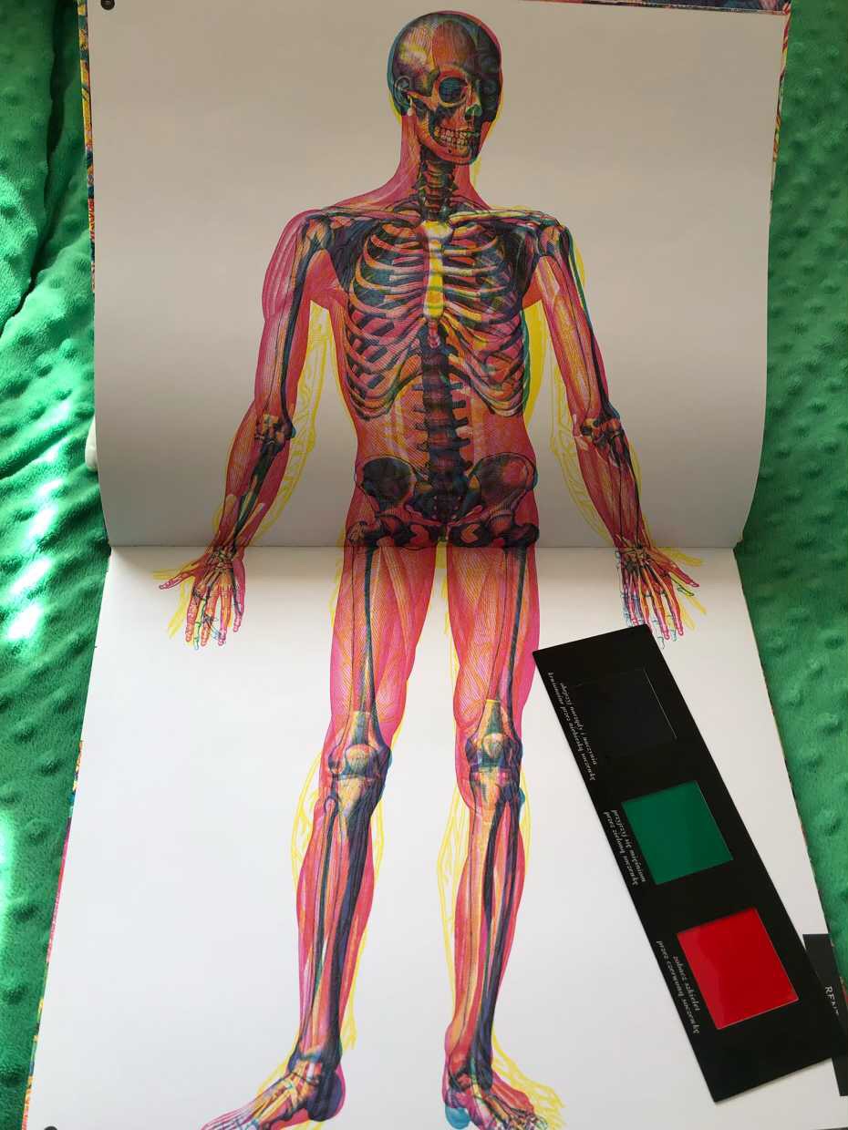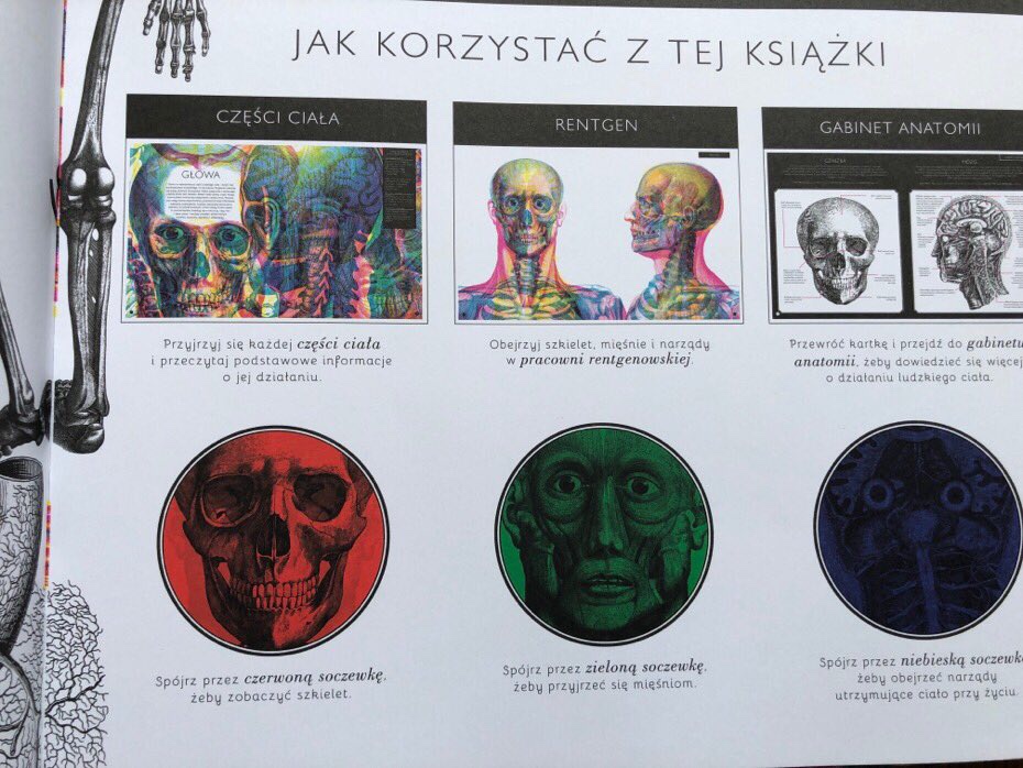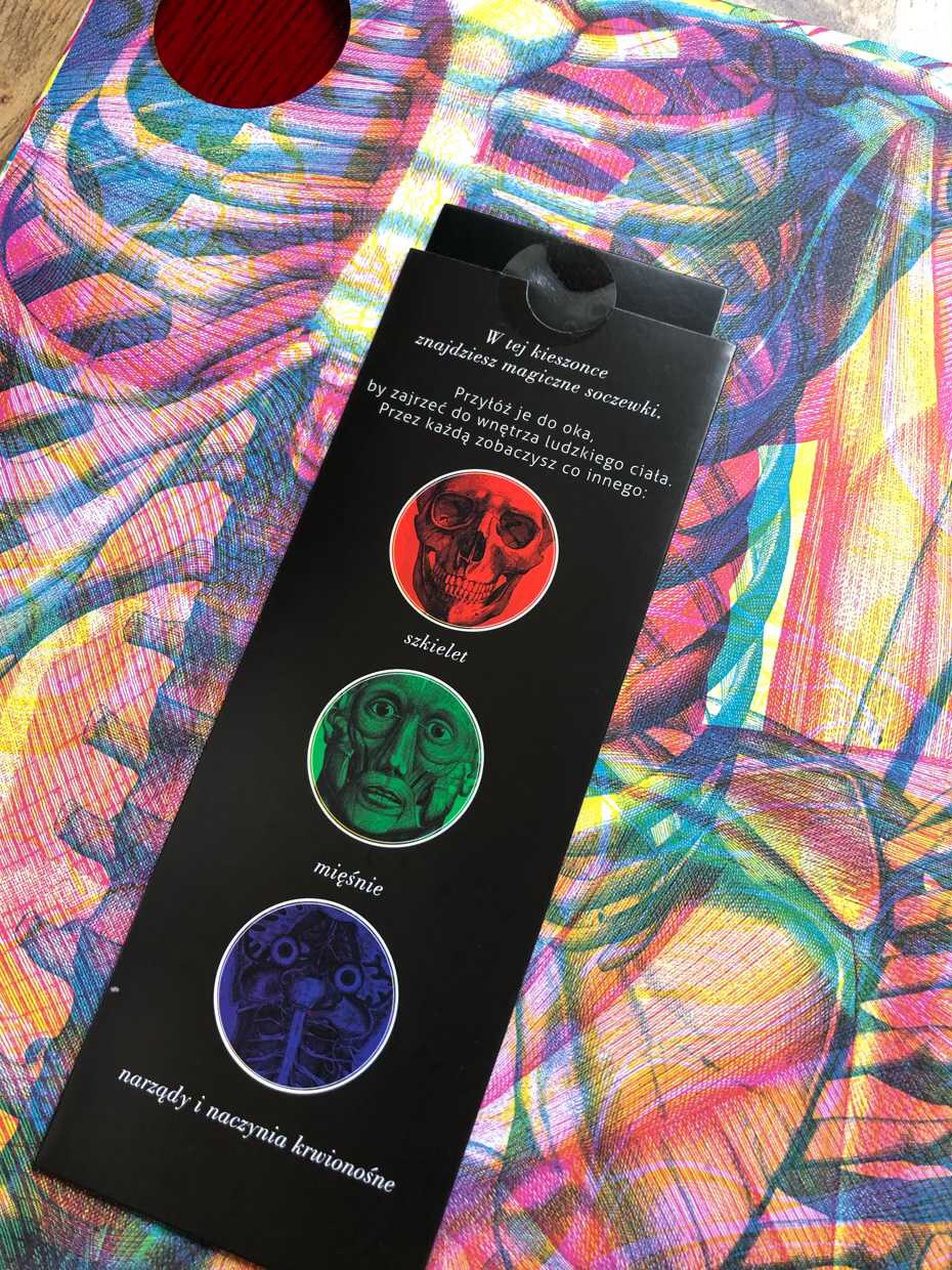 System filtrów staje się czymś znacznie więcej niż sztuczką, to czyni książkę wyjątkowym doświadczeniem. Kiedy zamieniamy kolory, widzimy niesamowity efekt odsłaniający szkielet pod ciałem i mięśniami.