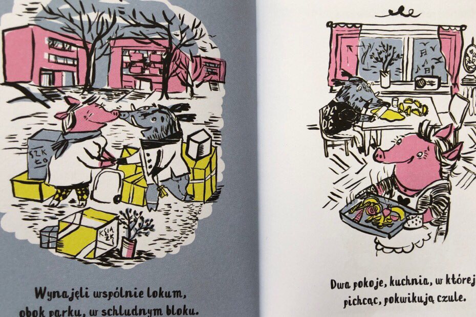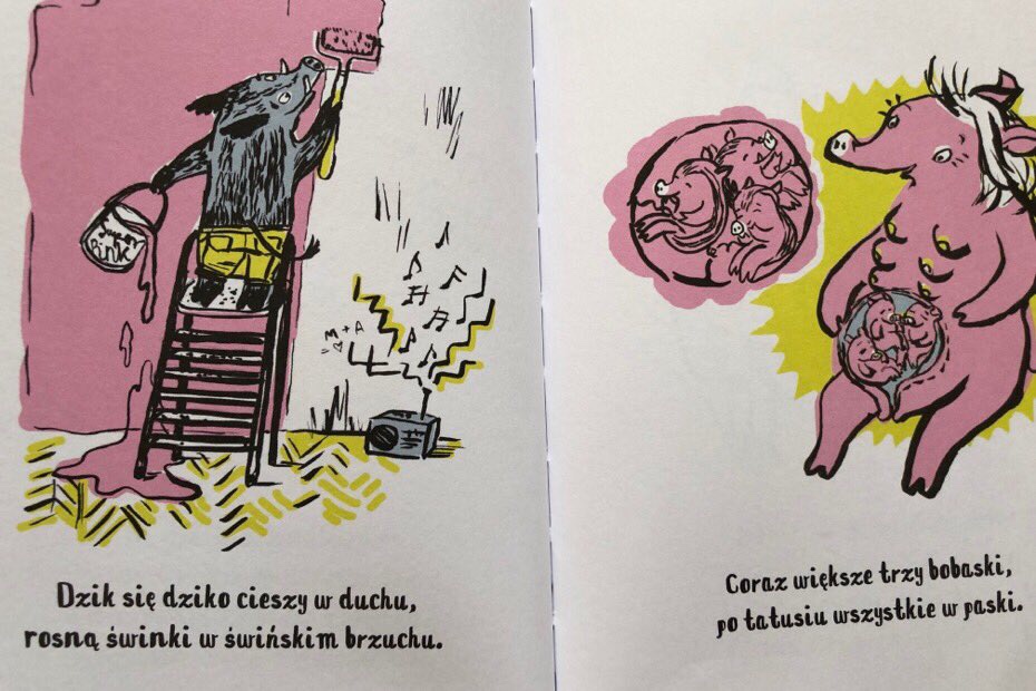 Czytamy rymowaną historię miłości Świnki i Dzika, w której nie tylko między wierszami, ale bardzo obrazowo, przedstawione jest, skąd się biorą małe prosiaczki.