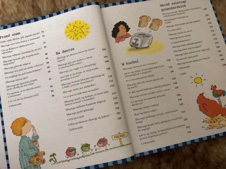 W książce znajdziemy przejrzyste odpowiedzi na mnóstwo interesujących pytań i trafne wyjaśnienia zasad działania różnych przedmiotów. Dzieci zainspirują się, by zadawać kolejne pytania, pozwalające im lepiej zrozumieć otaczający nas świat.