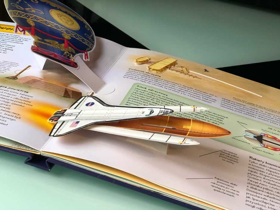 Jest to książka-rozkładanka, typu pop-up, z otwieranymi okienkami. Z pewnością zafascynuje małego czytelnika, chociażby ciekawym pomysłem na to, jak np. działa film animowany, z czego zbudowany jest silnik, czy jak pracują tłoki lokomotywy. Przekręcane kółka, pociągane wypustki i podnoszone klapki, a przede wszystkim trójwymiarowe modele umożliwiają własnoręczne sprawdzenie i przetestowanie tych niezwykłych mechanizmów, które na zawsze zmieniły świat.