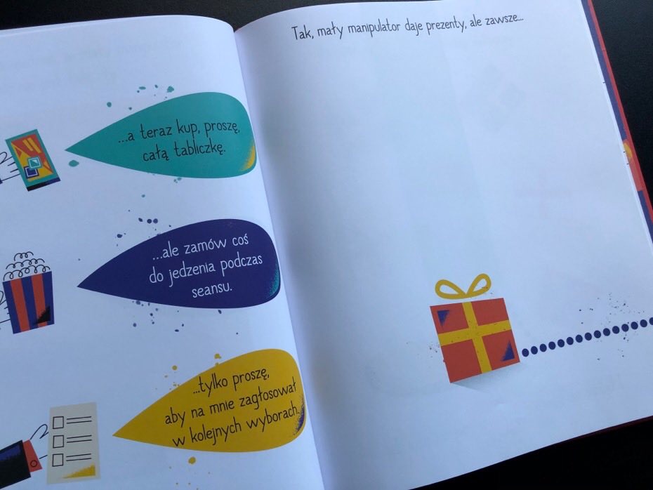 „Mały manipulator” to książka dla najmłodszych, pomagająca rozpoznać metody manipulacji i ucząca jak im się nie poddawać.