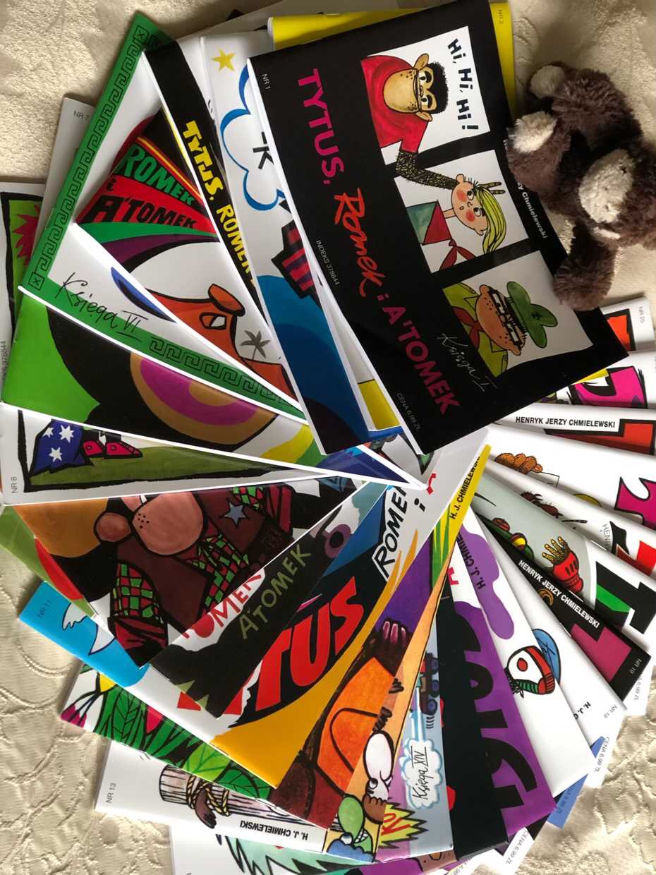 „Tytus, Romek i A’Tomek„ to komplet 25 oryginalnych wydań komiksów, zebranych w kolekcjonerskim pudełku. Każda rozśmiesza naszego Adasia (i jego Tatusia).