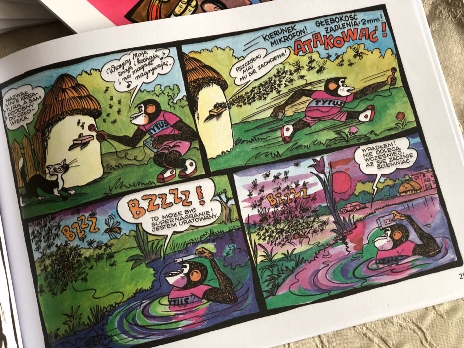 Czy 4-latek może lubić komiksy? Zdecydowanie tak. W przypadku naszego synka każda książeczka uczy go słownictwa i zapewnia nam sporą dawkę śmiechu. Z naszymi bohaterami Adaś zapoznał się na początku września i do dzisiaj czyta do snu kolejne tomy, rechocząc z tatą do ostatnich kartek. Jestem pod wrażeniem, że tak bardzo polubił całą trójkę i kojarzy ich przygody.
