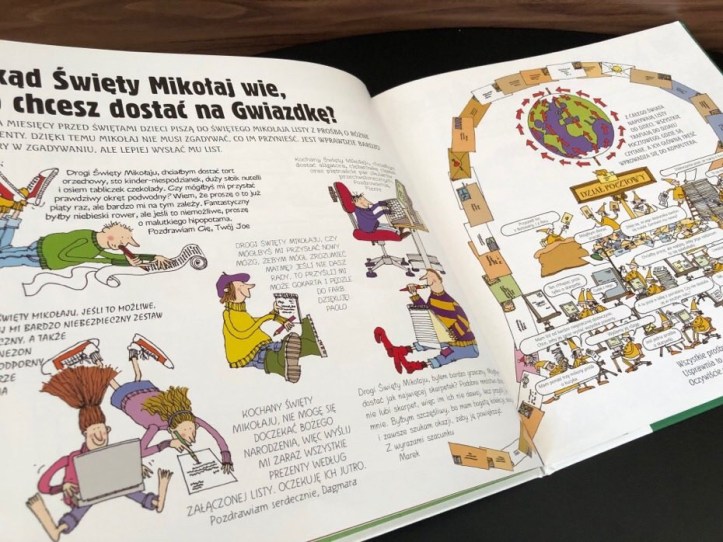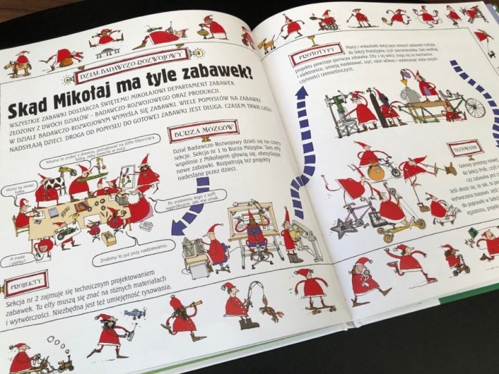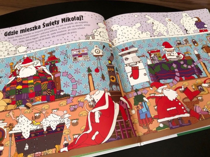 „Jak pracuje Święty Mikołaj?” to lektura z bardzo dużą ilością detali dla bystrego oka. Jest to kolorowa, pełna szczegółów i świetnie zilustrowana skarbnica wiedzy o Świętym Mikołaju i jego sekretach.