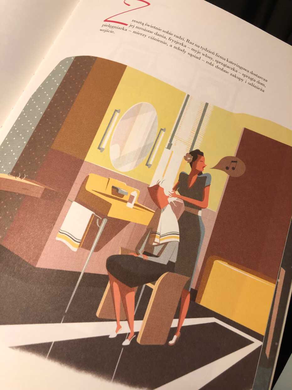 Bycie poza domem stało się dla niej synonimem zagrożenia. Mogłaby się poślizgnąć, rozchorować, być napadnięta, a nawet potrącona przez rozpędzonego kierowcę. Już lepiej zostać w domu i nie narażać się na uszczerbek na zdrowiu. Staruszka świetnie sobie radzi – raz na tydzień firma kateringowa dostarcza jej posiłki, fryzjerka odwiedza ją w domu, sprzątaczka sprząta, pielęgniarka mierzy ciśnienie, a młody sąsiad robi drobne zakupy.