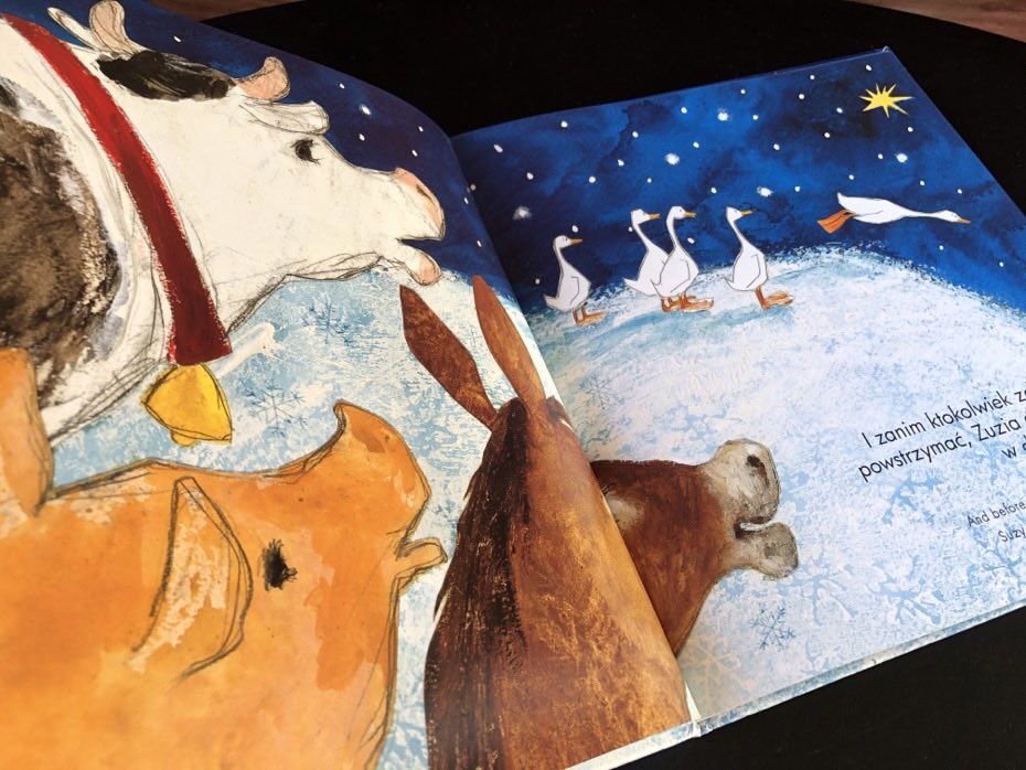 „Gąska Zuzia i pierwsza gwiazdka” to lektura uświadamiająca dzieciom, jak wielka jest siła przyjaźni i jak niezwykła magia towarzyszy świętom Bożego Narodzenia. Jest to opowieść, którą możemy przeczytać zarówno po polsku, jak i po angielsku. To pierwsza pozycja w Bibliotece Malucha, która napisana jest w dwóch językach w jednej książce.