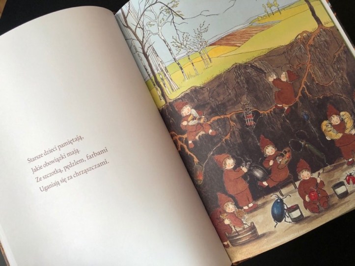 „Dzieci korzeni” to baśniowa opowieść ukazująca pory roku i Matkę Ziemię. Jest to pozycja ponadczasowa i ponadwiekowa, ponieważ książka liczy ponad sto lat, napisana została w 1906 r. Klimatyczne ilustracje niezwykle komponują się z tekstem. Lektura jest inna niż te, które dotąd czytaliśmy z Adasiem – jest mądra i interesująca. Jeśli maluch ciągle mnie prosi, aby przeczytać mu tę książkę od początku, to chyba coś w sobie musi mieć!
