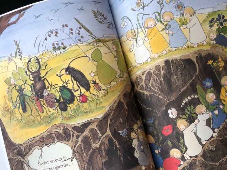 W końcu dzieci wyruszają z trawami i kwiatami w radosnym kolorowym pochodzie. Kiedy nadchodzi lato, bawią się na polach, stawach i łąkach. Bujna zieleń przepełniona pięknymi barwami daje znak, że zwiastuje najcieplejszą porę w roku. Natomiast z nadejściem jesieni, zmęczone i stęsknione dzieci powracają do Matki Natury, aby ułożyć się do spania i przeczekać zimę, aż nadejdzie pora na kolejną wiosnę.