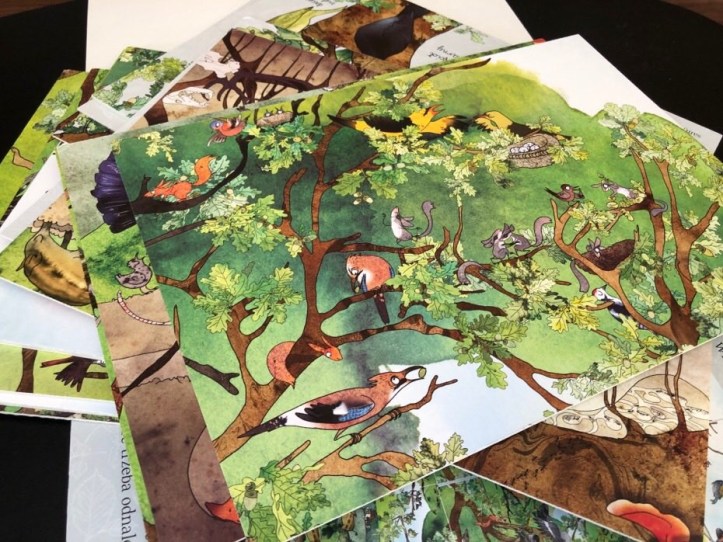 Po dołączeniu do siebie kart naszym oczom ukazuje się ogromny, piękny, tętniący życiem, rozłożysty dąb. Począwszy od samej korony, poprzez niższe gałęzie, pień, aż po same korzenie, dzieje się tu naprawdę wiele. Widzimy całą masę przeróżnych jego mieszkańców: ptaków, ssaków i owadów.
