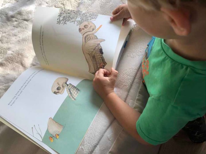 „Gęś, śmierć i tulipan” to historia przemijania, opowiedziana przy pomocy nieskomplikowanego dialogu między gęsią i śmiercią. Książka pozwala oswoić się z prostą myślą, że wszyscy kiedyś odchodzimy z tego świata. Nagle staje się to takie naturalne, że jesteśmy tu tylko przez chwilę, że życie się już nie powtórzy. Uważam, że lektura jest warta poznania, ponieważ w sposób piękny i melancholijny sposób opowiada o śmierci i oswaja z tym tematem.