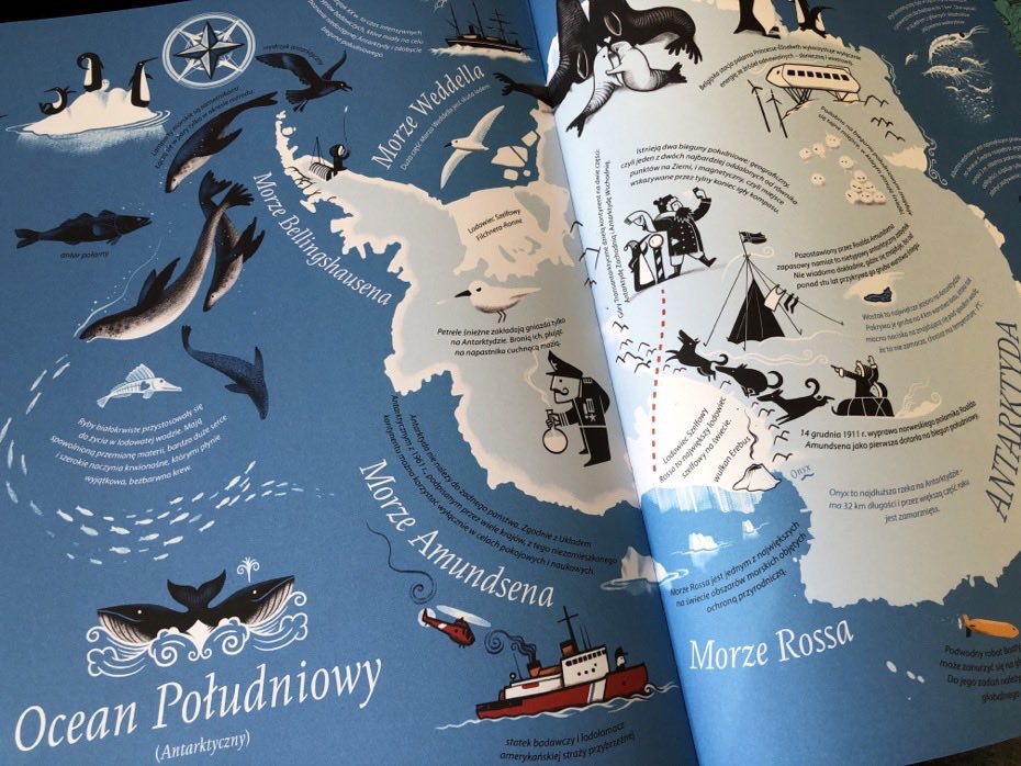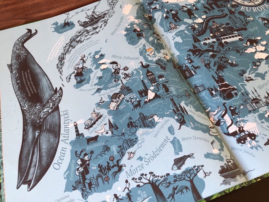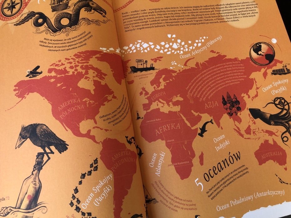 Książka podzielona jest na siedem regionów: Europa, Ameryka Północna, Południowa, Azja, Afryka, Oceania i Antarktyda. Pierwsza strona w każdej sekcji zawiera mapę obszaru, pokazującą morza i oceany, kraje oraz ich główne rzeki.