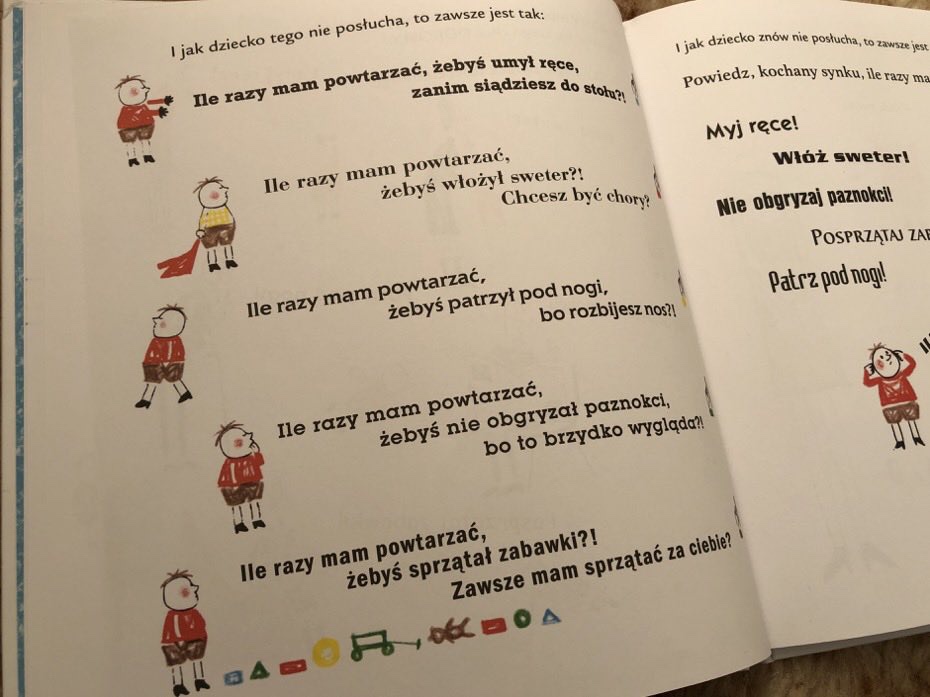 Książka ukazuje świat oczami dziecka, pełen nakazów, zakazów i ograniczeń. Każde dziecko wie, że o wiele zabawniej jest być niegrzecznym, niż grzecznym. Dorośli ciągle zabraniają czegoś dzieciom, zwracają im uwagę i każą się słuchać.