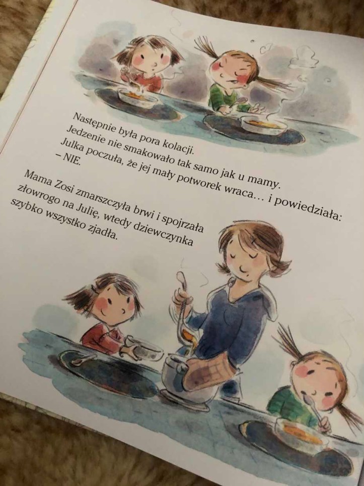 Pewnego dnia mama straciła ponownie nad sobą i podniosła na córeczkę głos. Nie spodziewała się, że dziecko może krzyknąć w odpowiedzi, nawet głośniej niż ona sama. W dodatku Julka ze złości wykrzyczała, że woli mieć inną, znacznie milszą mamę, np. Mamę Zosi.