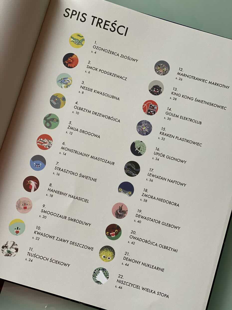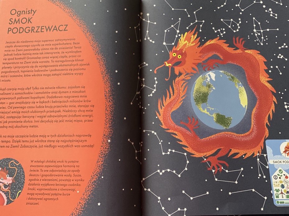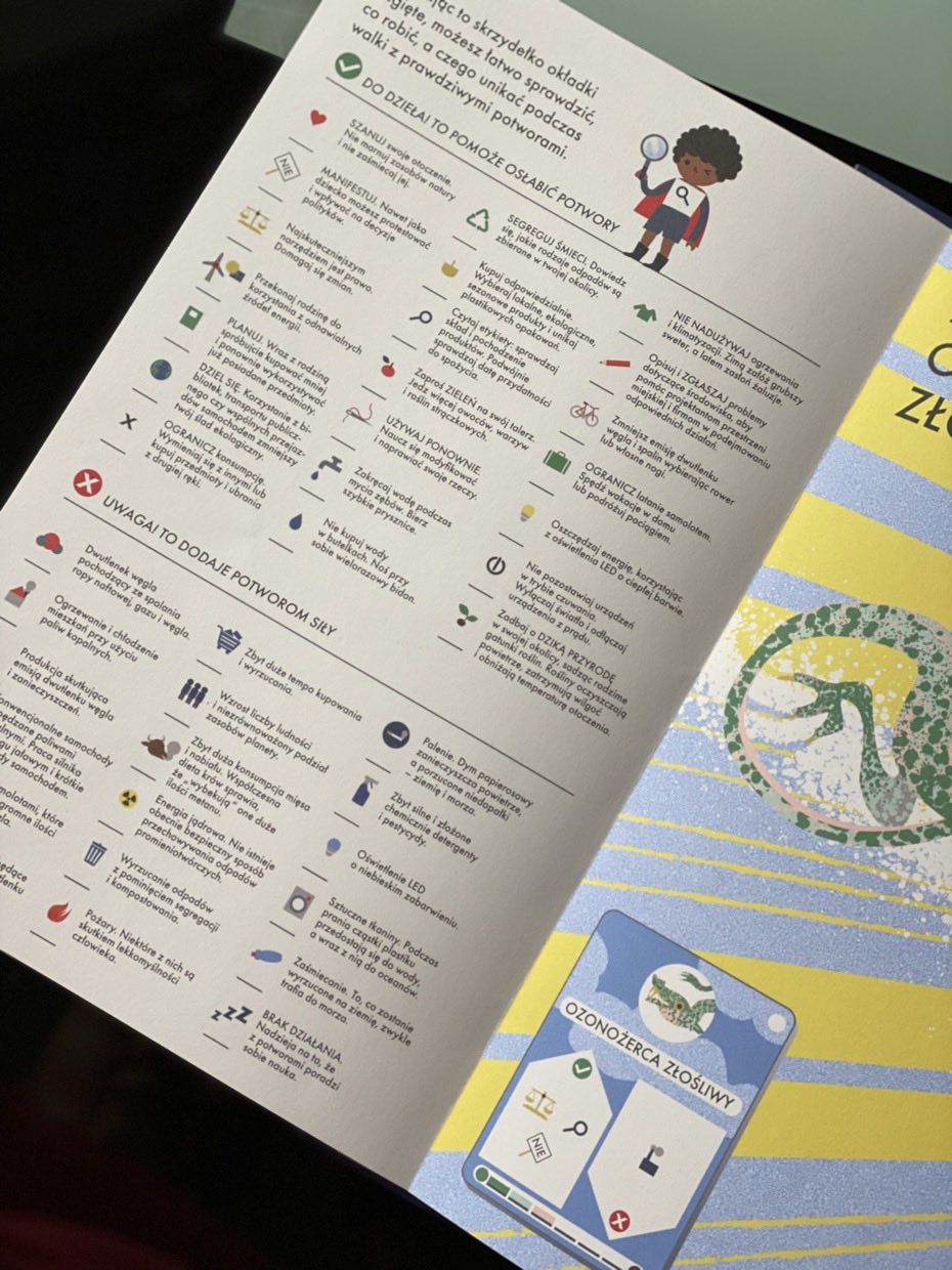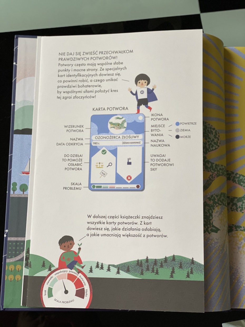 Ciekawą wstawką do książki jest skrzydełko okładki, które zawiera instrukcję, jak czytać „kartę potwora”. Trzymając je odgięte, łatwo można sprawdzić, co zagraża naszej planecie lub przyczynia się do powstania konkretnego problemu oraz co możemy zrobić, by temu zapobiec.