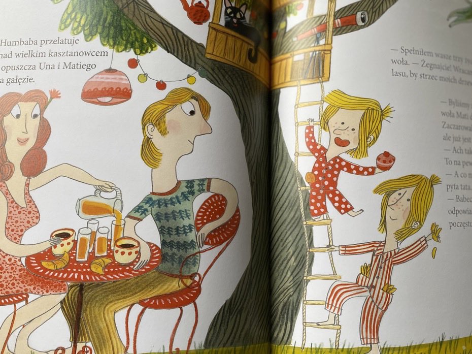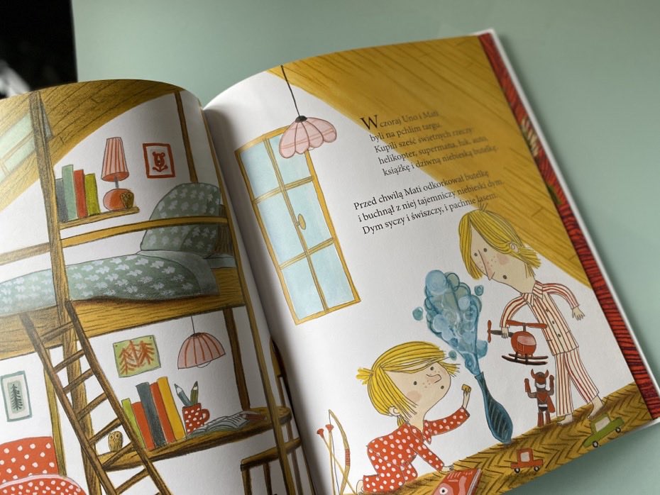 „Duch z butelki” to lektura z prostym i ciekawym tekstem. Nietuzinkowe ilustracje i zwarta przygoda daje czytelnikowi to, czego najbardziej szuka w książkach. Dla Adasia motyw z Czerwonego Lasu i spotkanie z dinozaurem zapewniło najważniejszą część historii. Mnie samą, jak już wspomniałam, zainteresowało to, o co poproszą chłopcy. Wcale mnie nie zaskoczyło pierwsze życzenie. Po drugiej prośbie, trzecie wydawało się bardzo oczywiste. Ciekawi mnie, jakie życzenia miałoby Wasze dziecko, jakbyście mieli taką butelkę? Koniecznie je o to zapytajcie. Dziecięca wyobraźnia może Was zaskoczyć.