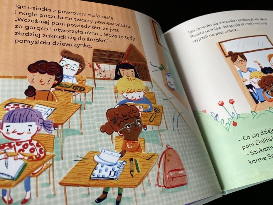 Podczas zajęć lekcyjnych dziewczynka nie mogła skupić się na zadaniu z matematyki. Wierciła się, bębniła palcami o blat ławki, gryzła końcówkę ołówka, czy pstrykała spinką do włosów. Iga potrafiła myśleć tylko o tym, że musi rozwiązać zagadkę zniknięcia karmy.