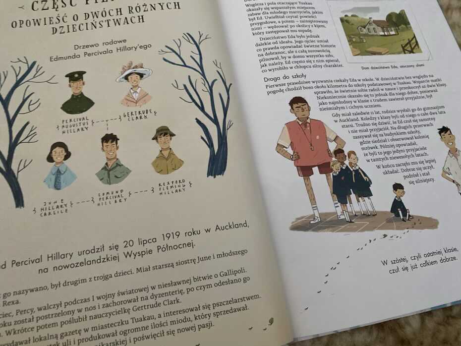 „Everest. Edmund Hillary i Tenzing Norgay. Niesamowita historia” to opowieść o wytrwałości, pomysłowości i nieustępliwości. Książka przypomina o heroicznych podróżnikach, którzy próbowali wcześniej wejść na szczyt, o ich nieocenionej spuściźnie, w postaci istotnych dla przeżycia informacji. Osobiście uważam, że jest to znakomita biografia graficzna wspinaczy na Everest: Edmunda Hillary’ego i Tenzinga Norgay’a. Cudowna lektura – zarówno dla starszych dzieci, jak i dorosłych. Szczerze polecam.