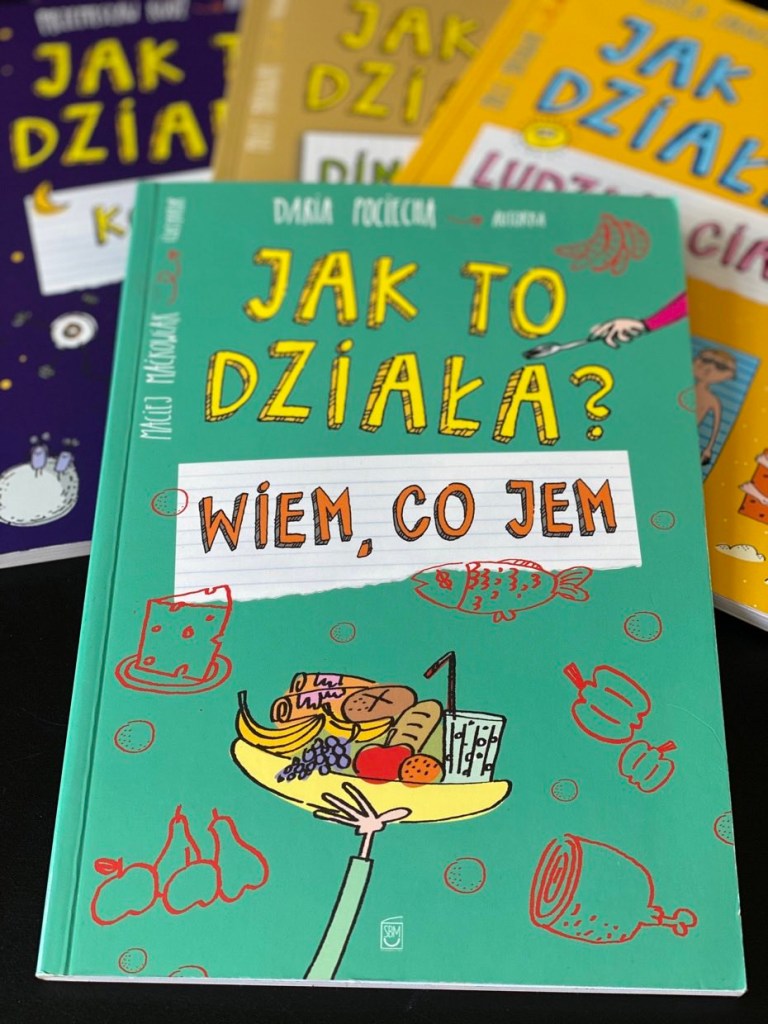“Jak to działa? Wiem, co jem.” to książka o zdrowym odżywianiu. Opisuje wpływ pożywienia na nasz organizm. Dzięki niej dowiemy się, czym jest piramida żywieniowa, czym są witaminy, mikroelementy, kalorie oraz czy warto jeść słodycze.
