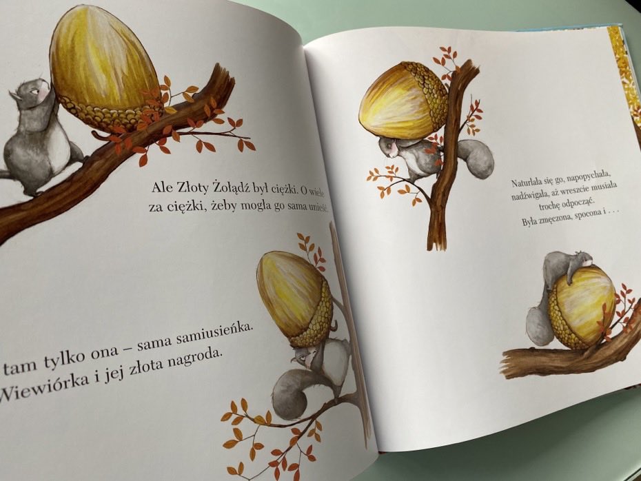 Jest to krótka historyjka, pisana bardzo łatwym i zrozumiałym dla najmłodszych językiem. Duży format książki, z kolorowymi ilustracjami, wspaniale podkreśla utrzymanie jesiennego tonu.